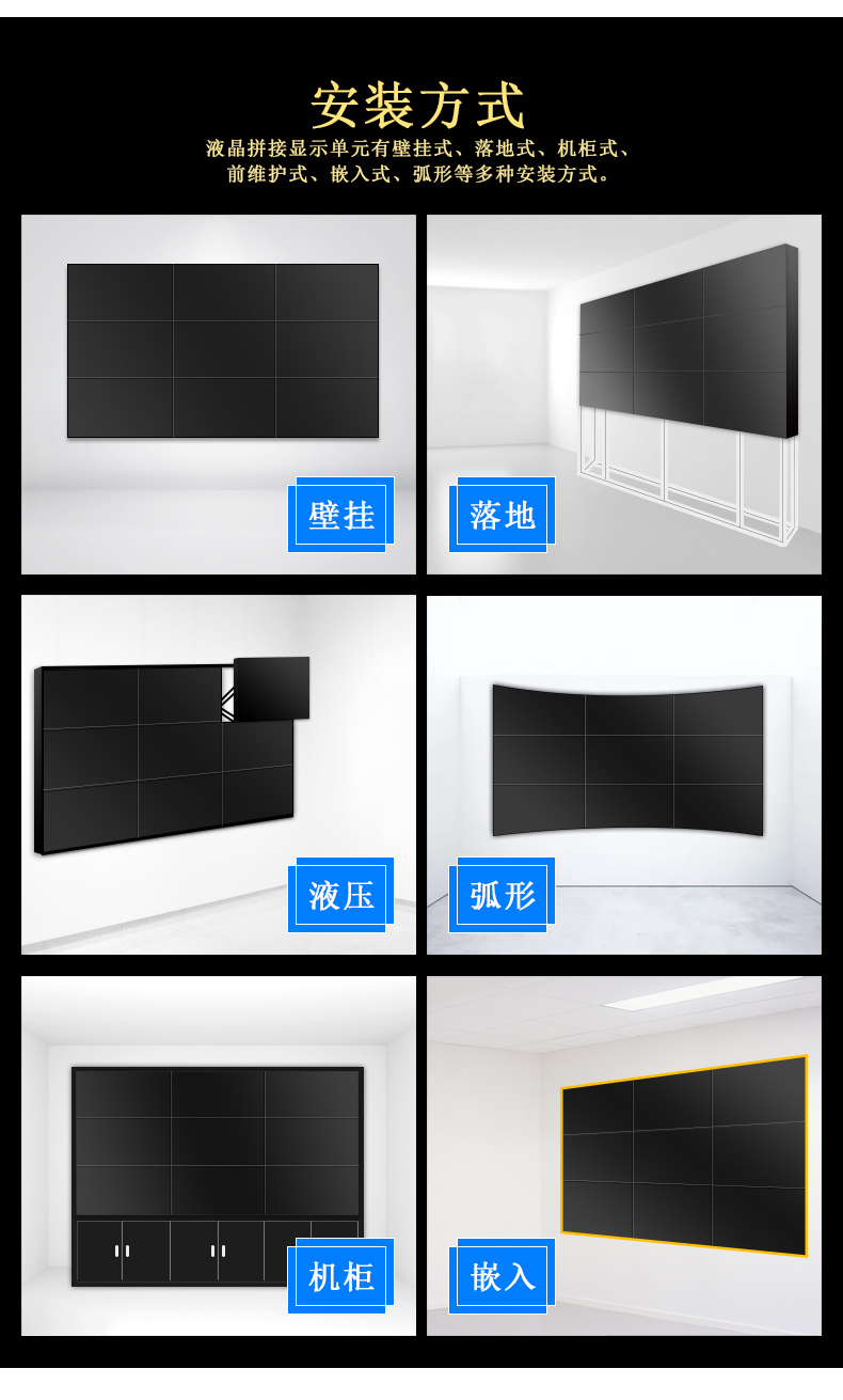 【美佳愛-4k液晶拼接屏生產廠家電話400-997-9971】原裝LG55寸液晶拼接屏3.5mm產品通過ISO9001_3C_節能認證等30多項認證,主營LG/京東方/三星大屏幕電視墻,其尺寸有32寸40寸43寸46寸49寸55寸65寸75寸液晶拼接單元,也有曲面,弧形,柔性,無縫LED顯示屏,顯示器,超窄邊高清監視器,提供企業展廳展示,KTV,酒吧,會議室,視頻監控系統解決方案設計-報價-安裝施工-售后超窄邊維修等服務