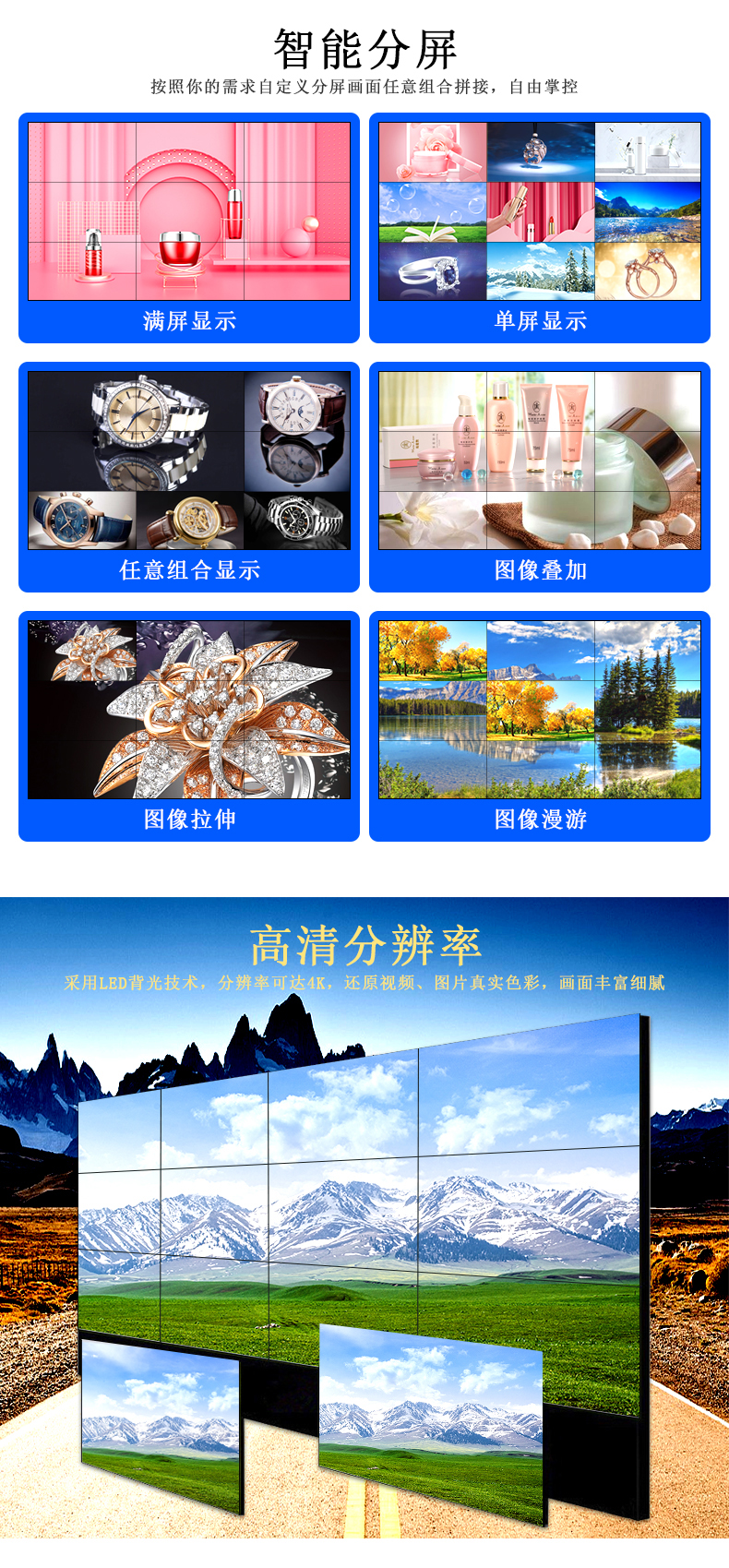 【美佳愛-4k液晶拼接屏生產(chǎn)廠家電話400-997-9971】京東方55寸液晶拼接屏-拼縫3.5mm產(chǎn)品通過ISO9001_3C_節(jié)能認(rèn)證等30多項認(rèn)證,主營LG/京東方/三星大屏幕電視墻,其尺寸有32寸40寸43寸46寸49寸55寸65寸75寸液晶拼接單元,也有曲面,弧形,柔性,無縫LED顯示屏,顯示器,超窄邊高清監(jiān)視器,提供企業(yè)展廳展示,KTV,酒吧,會議室,視頻監(jiān)控系統(tǒng)解決方案設(shè)計-報價-安裝施工-售后超窄邊維修等服務(wù)