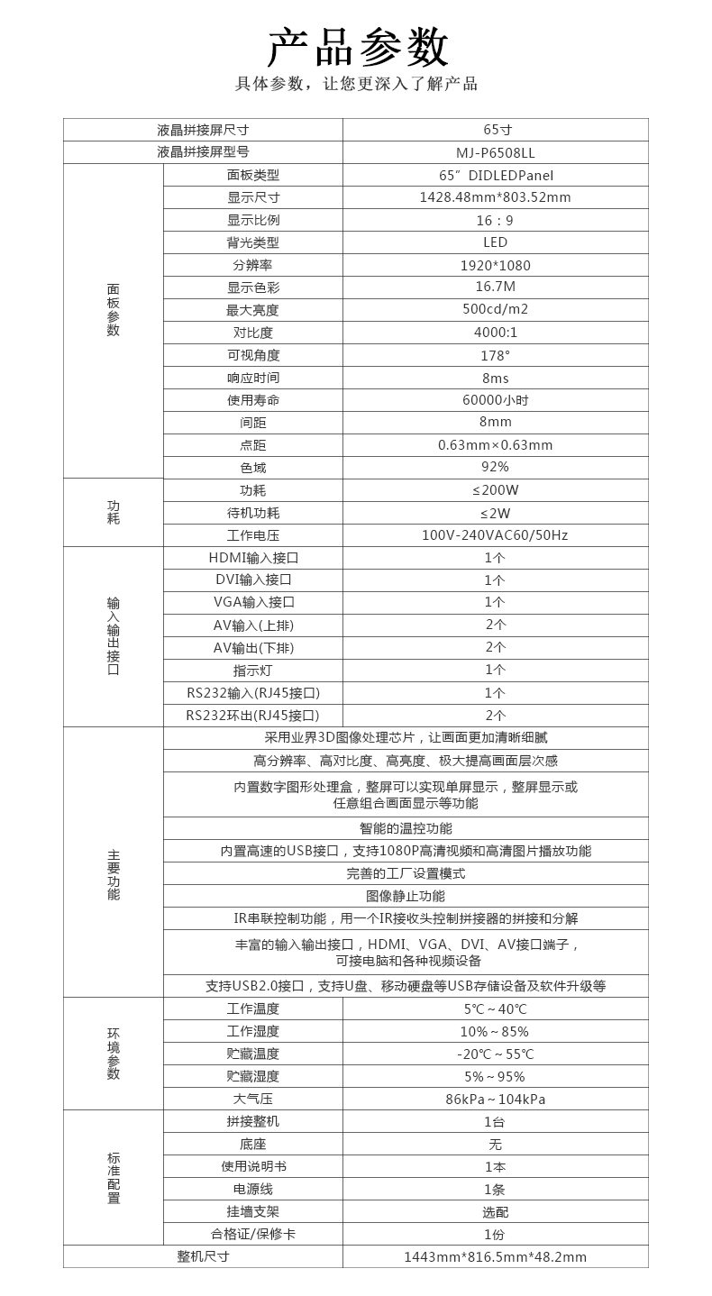 【美佳愛-4k液晶拼接屏生產廠家電話400-997-9971】LG65寸液晶拼接屏-拼縫8mm產品通過ISO9001_3C_節能認證等30多項認證,主營LG/京東方/三星大屏幕電視墻,其尺寸有32寸40寸43寸46寸49寸55寸65寸75寸液晶拼接單元,也有曲面,弧形,柔性,無縫LED顯示屏,顯示器,超窄邊高清監視器,提供企業展廳展示,KTV,酒吧,會議室,視頻監控系統解決方案設計-報價-安裝施工-售后超窄邊維修等服務