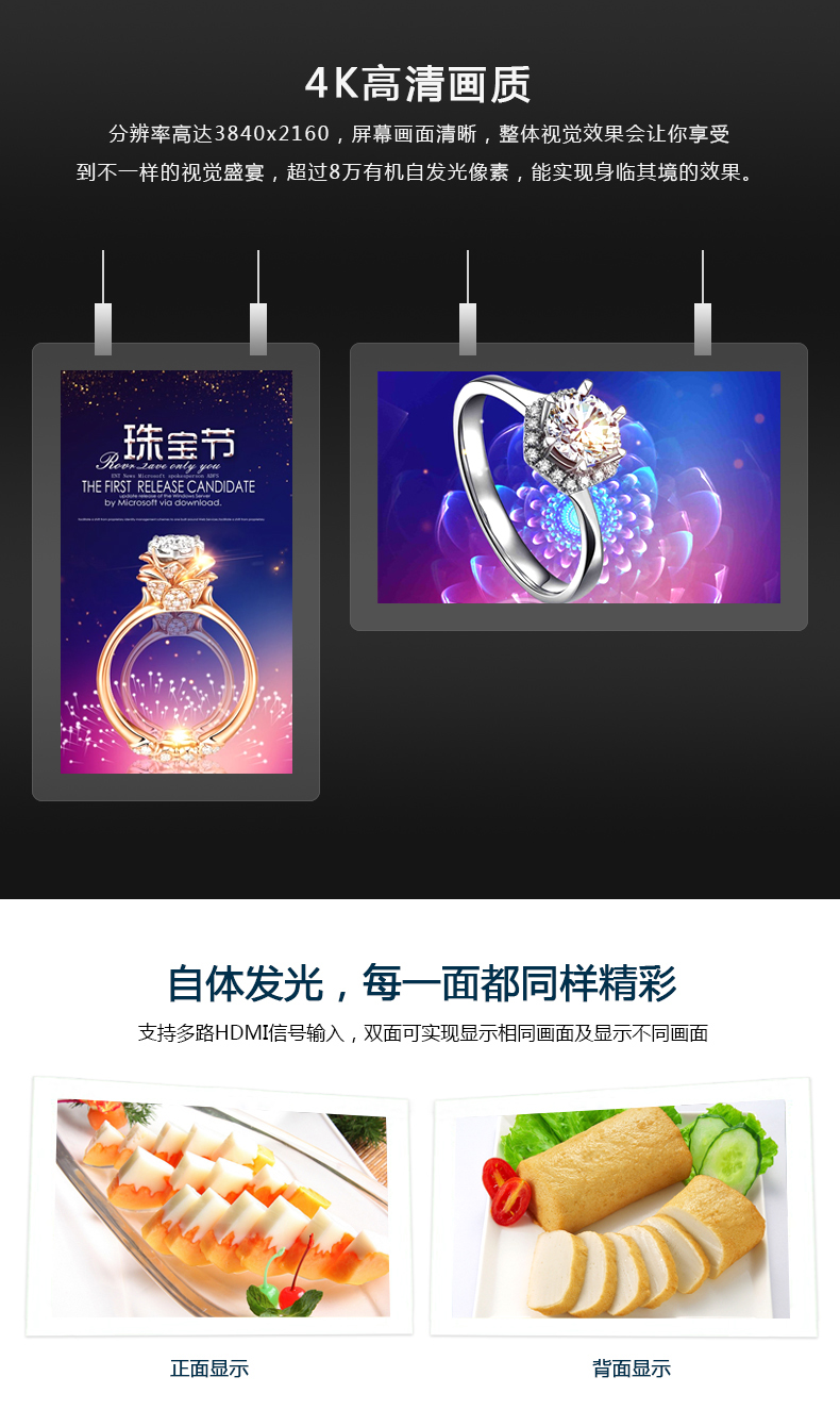 【深圳市美佳愛-液晶廣告機,觸摸一體機生產廠家電話400-997-9971】65寸超薄雙面吊掛OLED廣告機ISO9001_3C認證,主營多點紅外/電容式觸摸屏一體機,觸控查詢一體機,其他尺寸18.5寸21寸24寸27寸32寸40寸43寸46寸49寸55寸65寸75寸86寸98寸100寸多功能多媒體教學會議一體機,戶外立式/壁掛雙面廣告機,單機版/安卓網絡廣告機 豎屏樓宇電梯廣告機,長條型屏,工業級工控電腦觸摸顯示器,大尺寸觸摸屏查詢系統,商顯平板電腦電視,提供報價價格,安裝施工,售后維修等