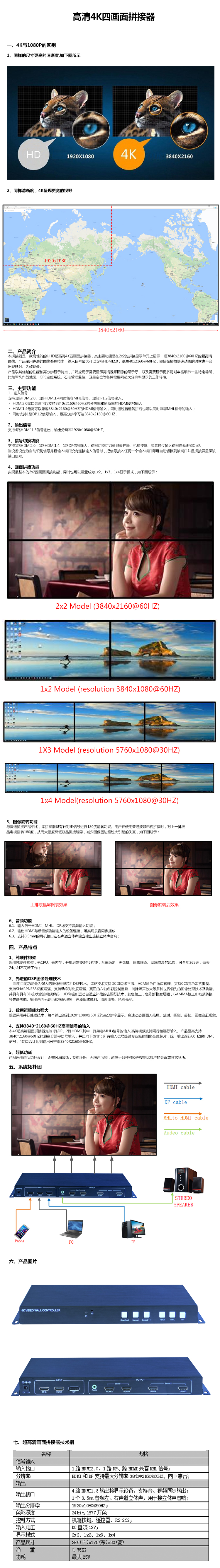 4、支持3840*2160@60HZ高清信號的輸入