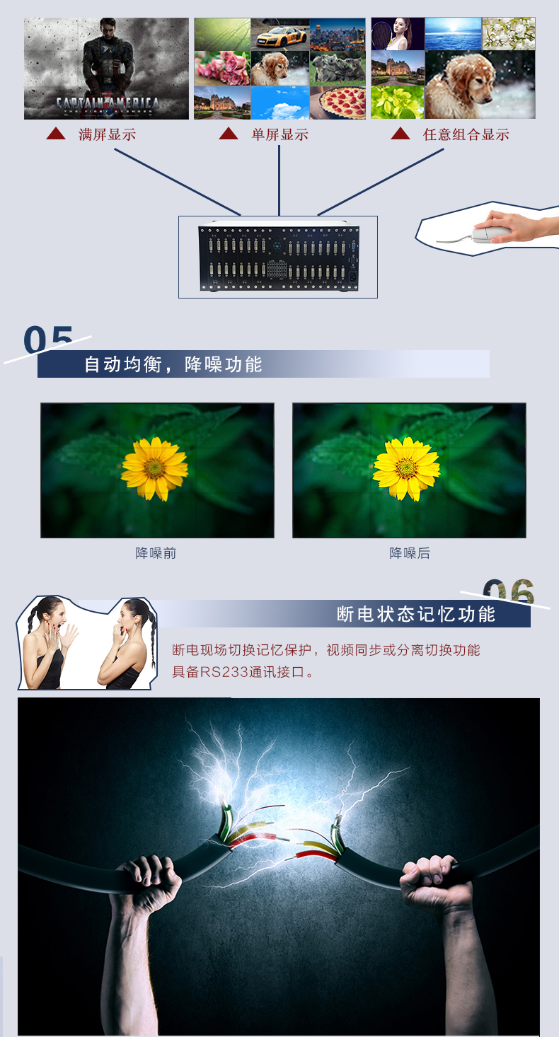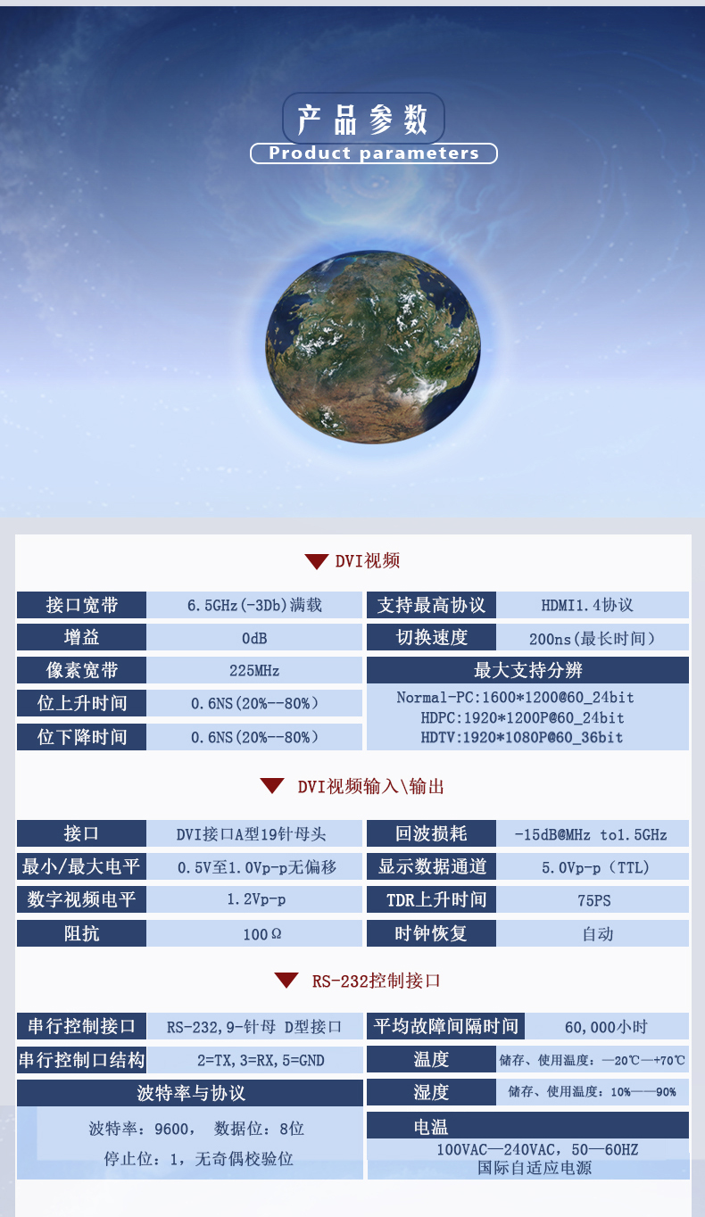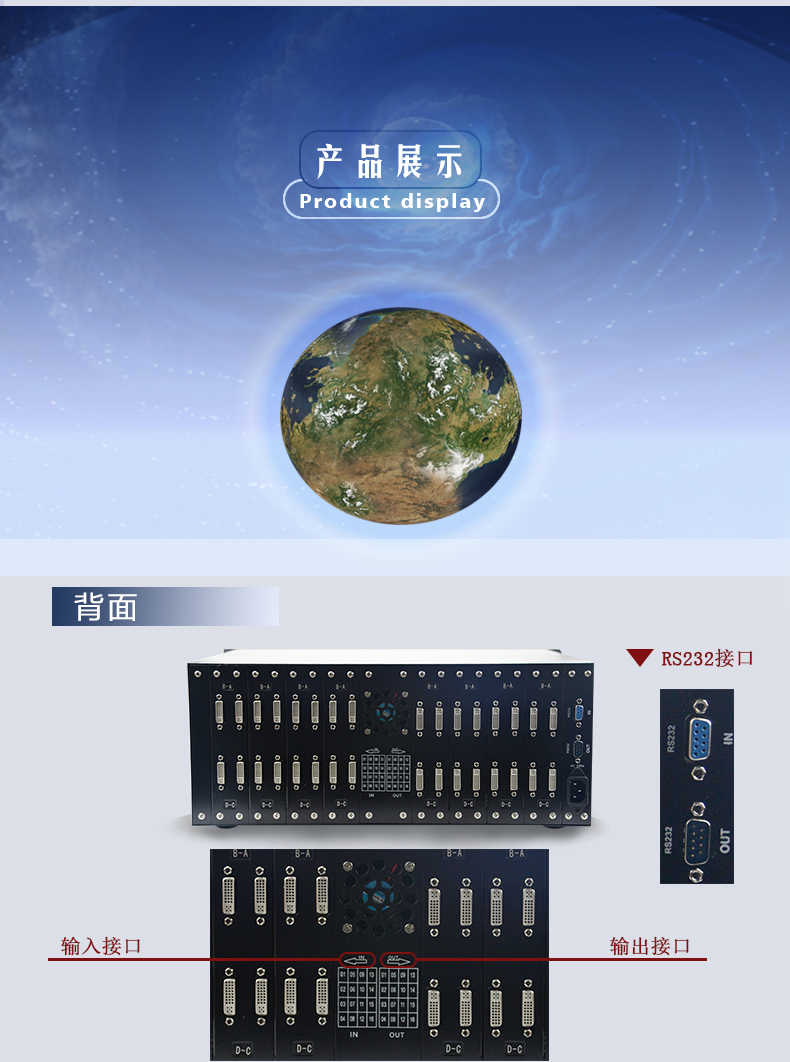 輸入路數(shù):4路,8路,12路,16路,24路,32路,36路,46路,48路,64進(jìn);輸出路數(shù):4出,8出,12出,16出,24出,32出,36出,45出,48出,64出,128輸出DVI矩陣切換器