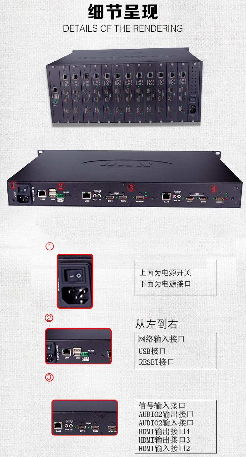 路數:2屏,4屏,6屏,8屏,10屏,12屏,16屏,18屏,20屏,22屏,24屏,26屏,28屏,32屏,36路輸出網絡數字解碼矩陣切換器采用最新的安防專用編解碼芯片,解碼、編碼、拼接、分割、畫中畫、漫游等功能,為工程項目最大程序解決大數據數字化監控系統提供解碼上墻及多信號輸入編碼等提供一站式解決方案;設備采用全鋁標準機箱,結構上大氣美觀可靠,散熱性結構化好