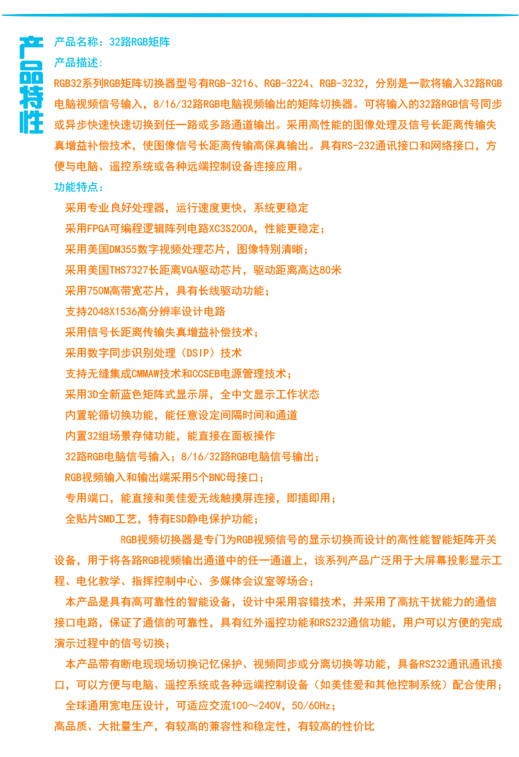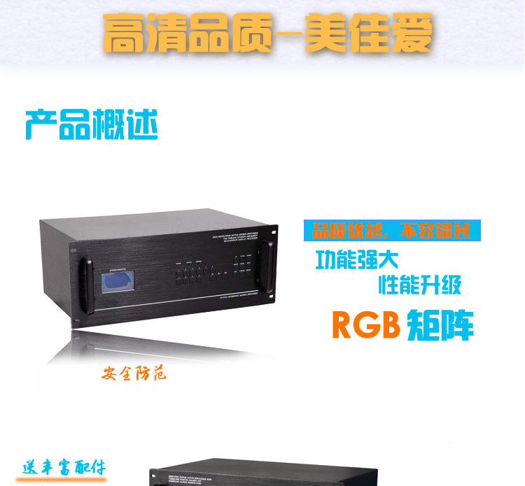 【深圳市美佳愛-矩陣切換器,視頻拼接處理器生產(chǎn)廠家電話400-997-9971】RGB矩陣切換器通過ISO9001_3C認(rèn)證,型號規(guī)格有4進(jìn),8進(jìn),12進(jìn),16進(jìn),24進(jìn),32進(jìn),48進(jìn),64進(jìn),128路輸入,4出,8出,12出,16出,24出,32出,48出,64出,128路輸出,專業(yè)提供LED視頻處理器,監(jiān)控音視頻矩陣切換器,DVI/SDI/RGB/HDMI/VGA混合矩陣,外置拼接處理器,視頻服務(wù)器,云處理器,液晶大屏幕處理器,視頻分配器,網(wǎng)絡(luò)高清數(shù)字解碼矩陣主機生產(chǎn)廠家,高品質(zhì),穩(wěn)定性強的產(chǎn)品和服