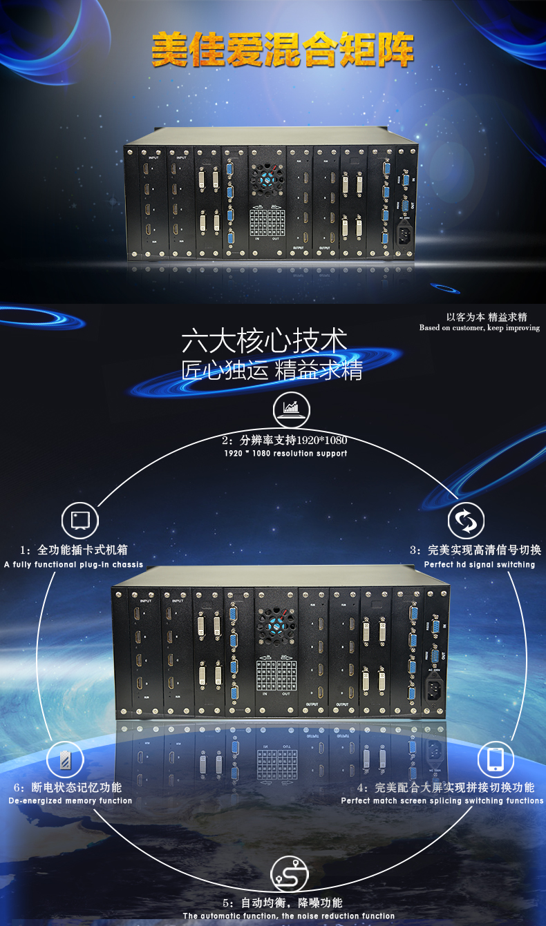 【深圳市美佳愛-矩陣切換器,視頻拼接處理器生產(chǎn)廠家電話400-997-9971】高清混合矩陣切換器通過ISO9001_3C認(rèn)證,型號規(guī)格有4進,8進,12進,16進,24進,32進,48進,64進,128路輸入,4出,8出,12出,16出,24出,32出,48出,64出,128路輸出,專業(yè)提供LED視頻處理器,監(jiān)控音視頻矩陣切換器,DVI/SDI/RGB/HDMI/VGA混合矩陣,外置拼接處理器,視頻服務(wù)器,云處理器,液晶大屏幕處理器,視頻分配器,網(wǎng)絡(luò)高清數(shù)字解碼矩陣主機生產(chǎn)廠家,高品質(zhì),穩(wěn)定性強的產(chǎn)品和