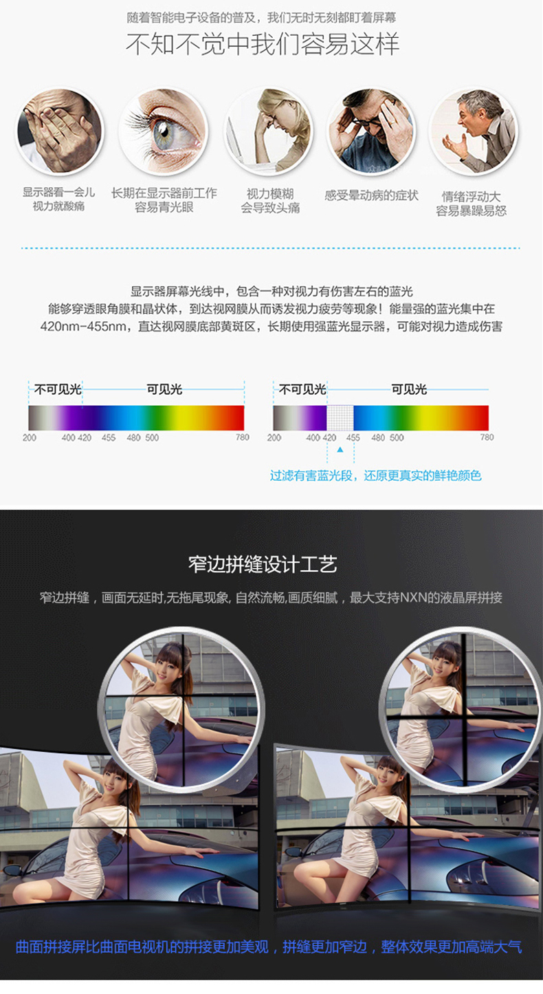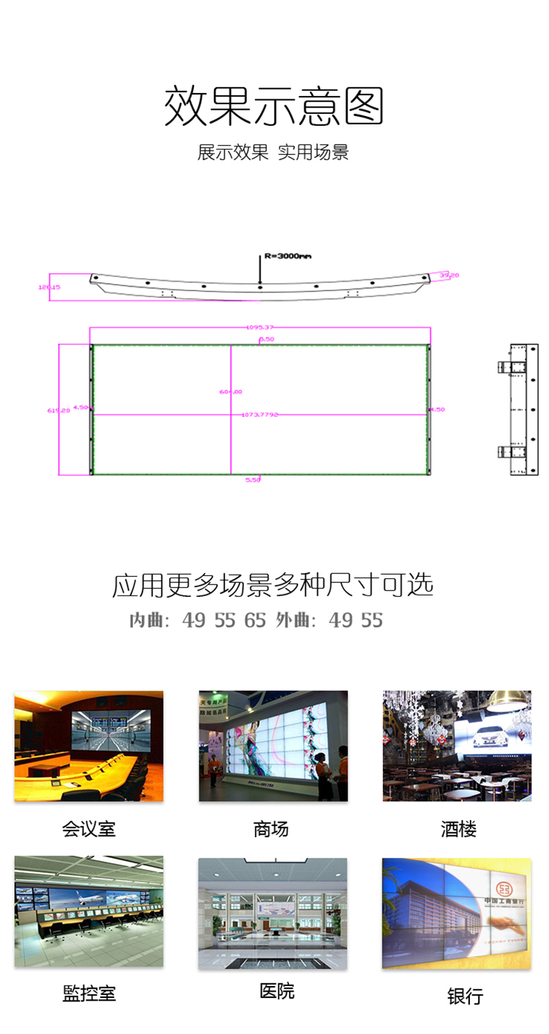 【美佳愛-4k液晶拼接屏生產廠家電話400-997-9971】高清曲面液晶拼接屏產品通過ISO9001_3C_節能認證等30多項認證,主營LG/京東方/三星大屏幕電視墻,其尺寸有32寸40寸43寸46寸49寸55寸65寸75寸液晶拼接單元,也有曲面,弧形,柔性,無縫LED顯示屏,顯示器,超窄邊高清監視器,提供企業展廳展示,KTV,酒吧,會議室,視頻監控系統解決方案設計-報價-安裝施工-售后超窄邊維修等服務